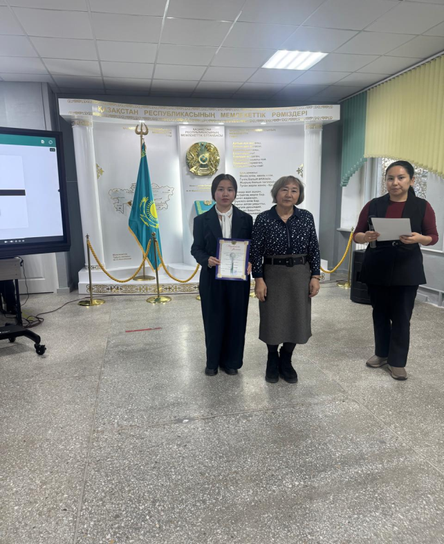“Шешендік, білгірлік сайысы” номинациясы бойынша 11 “А” сынып оқушысы Смагулова Зарина жүлделі ІІ орын иеленді.